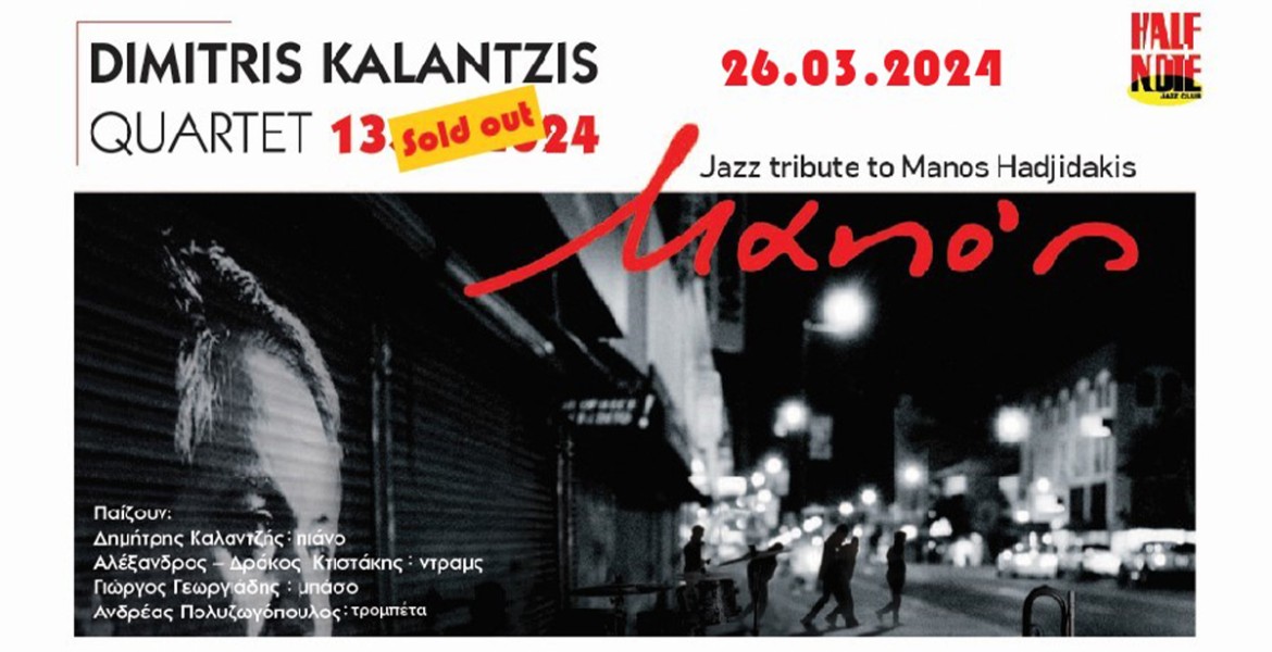Boem TeamΤο υπέροχο κουαρτέτο του Δημήτρη Καλαντζή, έρχεται στη σκηνή του Half Note Jazz Club, για ένα μοναδικό jazz αφιέρωμα στον σπουδαίο Μάνο Χατζιδάκι, για 2 βραδιές την Τετάρτη 13 και την Τρίτη 26 Μαρτίου.