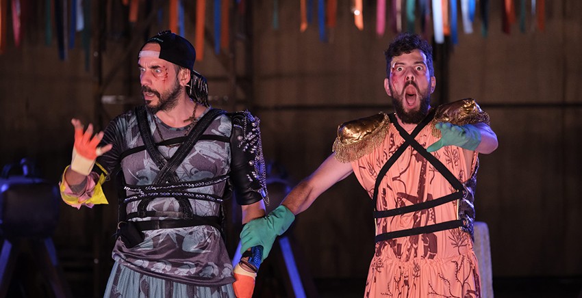 Η μουσική του Θοδωρή Ρέγκλη, ο οποίος υπογράφει και την προσαρμογή των στίχων των χορικών, σε συνδυασμό με την ερμηνεία του Πάνου Μουζουράκη στον ρόλο του Δημοσθένη αλλά και η χορογραφία του Κ. Ρήγου ξανασυστήνουν την Αριστοφανική Κωμωδία στο σύγχρονο κοινό. Το φαλλικό στοιχείο φυσικά υπάρχει αλλά στο μέτρο που συνιστά τον συμβολισμό μιας πατριαρχικής ολιγαρχίας, καθώς ο Κώστας Κόκλας στον ρόλο του Παφλαγόνα διαγωνίζεται στην ψευτιά και την απατεωνιά τον Κωνσταντίνο Αβαρικιώτη ως Αγοράκριτο – αμφότεροι εξαιρετικοί, με σπάνια σκηνική ταπεινότητα που επιτρέπει ακόμα περισσότερο στην ερμηνεία τους να διαφανεί στο ακέραιο. Τα κοστούμια της Νατάσα Δημητρίου και το σκηνικό της Μαίρη Τσαγκάρη και του σκηνοθέτη, συγκροτούν μια ενιαία αισθητική που ενισχύει το σκηνοθετικό όραμα. Ο Στέλιος Ιακωβίδης, ένας ηθοποιός με τεράστιο εκτόπισμα, ως Δήμος, εμφανίζεται αρχικά με ένα κοστούμι που παραπέμπει στον Σοφό από την σειρά κινουμένων σχεδίων “Μια φορά κι ένα καιρό ήταν ο Άνθρωπος” και με την νίκη του Αγοράκριτου επανεμφανίζεται να παρελαύνει ως μοντέλο πασαρέλας, μια σαφής νύξη για την κενή νοήματος αλλά “καθαρή” αισθητική της σύγχρονης Αθήνας. Ο Χορός σύσσωμος επιδεικνύει άριστη τεχνική και υποκριτική δεινότητα με τον Κωνσταντίνο Μπιμπή να επιδίδεται σε λαρυγγισμούς και φωνητικές ακροβασίες που χαρίζουν γέλιο.