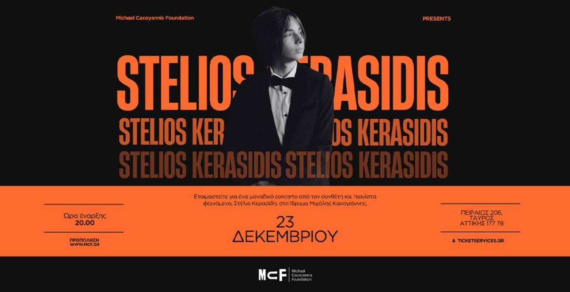 Ένα μοναδικό κονσέρτο παρουσιάζει ο ταλαντούχος πιανίστας Στέλιος Κερασίδης στο 'Ιδρυμα Μιχάλης Κακογιάννης στις 23 Δεκεμβρίου 2025.