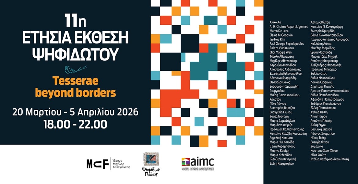 Για μια ακόμη χρονιά το Ίδρυμα Μιχάλης Κακογιάννης εμπλουτίζει τους χώρους του με ψηφιδωτά Ελλήνων και, για πρώτη φορά, ξένων καλλιτεχνών, στο πλαίσιο της 11ης Ετήσιας Εκθεσης Ψηφιδωτού που πραγματοποιείται από τις 20 Μαρτίου ως τις 5 Απριλίου 2026.