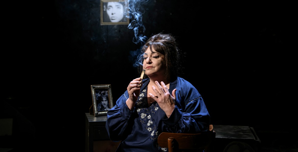 Και είναι ακριβώς εκεί, στη σκηνή του θεάτρου Σταθμός που συντελείται το θαύμα. Είναι λες και ο χωροχρόνος καταργείται και όλοι μαζί μεταφερόμαστε σε μια στιγμή μαγική που παντρεύει το πριν, το μετά και το πάντα. Το κείμενο του Δημήτρη Οικονόμου (που όπως διαβάζω έχει την έγκριση τόσο της κόρης όσο και της αδελφής της Φλέρυς Νταντωνάκη) φαντάζει αλλόκοσμο, σπαρακτικά ρεαλιστικό από τη μια, ποιητικά ρομαντικό από την άλλη, έτσι καθώς ξεχειλίζει τις λέξεις με μια αβάσταχτη μουσικότητα, λες και ακούς εκστατικά μια συμφωνία που την παίζει ορχήστρα αόρατη που όμως σε περικυκλώνει από παντού. Ταξιδεμένος στον χρόνο ο λόγος, απεικονίζει στιγμιότυπα, προσφέρει τραγούδια, χαρίζει απλόχερα ψυχή και ζωντανεύει αυτό το πλάσμα μπροστά μας σαν μορφή υπαρκτή και μαζί φάσμα από έναν κόσμο άλλον, στον οποίο όλοι εμείς βρεθήκαμε διαχρονικά παρόντες.
